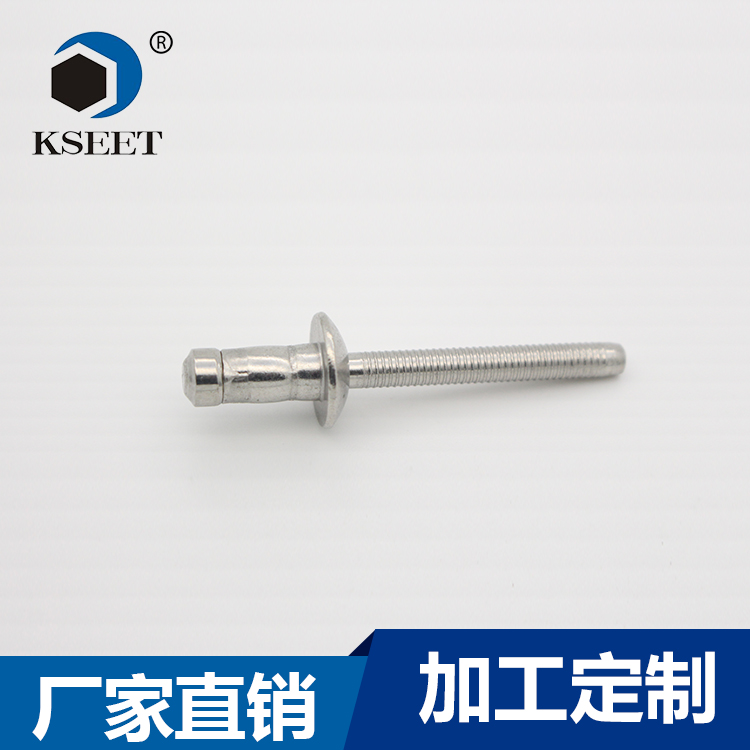1.单鼓铆钉是众多抽芯铆钉中的一种,属于结构型抽芯铆钉。单鼓铆钉在铆接时钉芯将铆钉钉体末端拉成单鼓或多鼓型,把两个要铆接的结构件夹紧,并能降低作用在结构件表面上的压力,适用于铆接薄型结构件。如塑料、铝材等有一定的保护作用,避免使铆接孔变形而破坏铆接件。